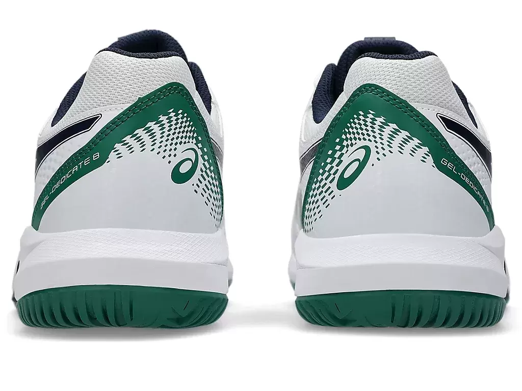 La zapatilla de tenis GEL-DEDICATE® 8 (Ancha) ofrece buena estabilidad y una sensación de flexibilidad para mantener la concentración durante el partido.
