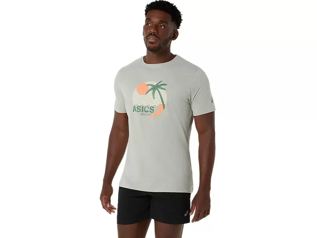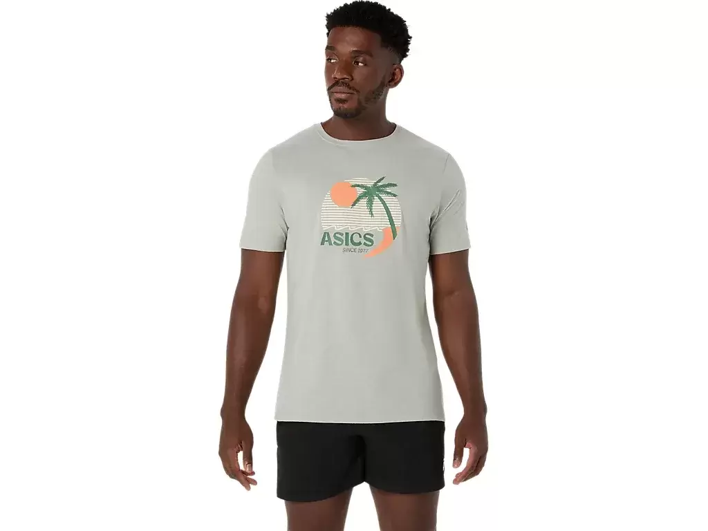 Esta cómoda camiseta de punto de manga corta se inspira en las playas soleadas. El gráfico frontal presenta varios elementos costeros que se complementan con colores vibrantes.