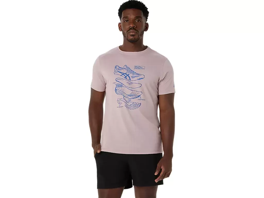 Esta cómoda camiseta de punto de manga corta se inspira en los bocetos de las zapatillas de running de alto rendimiento de ASICS. Lleva un estampado frontal que muestra los diversos componentes utilizados en su fabricación.
