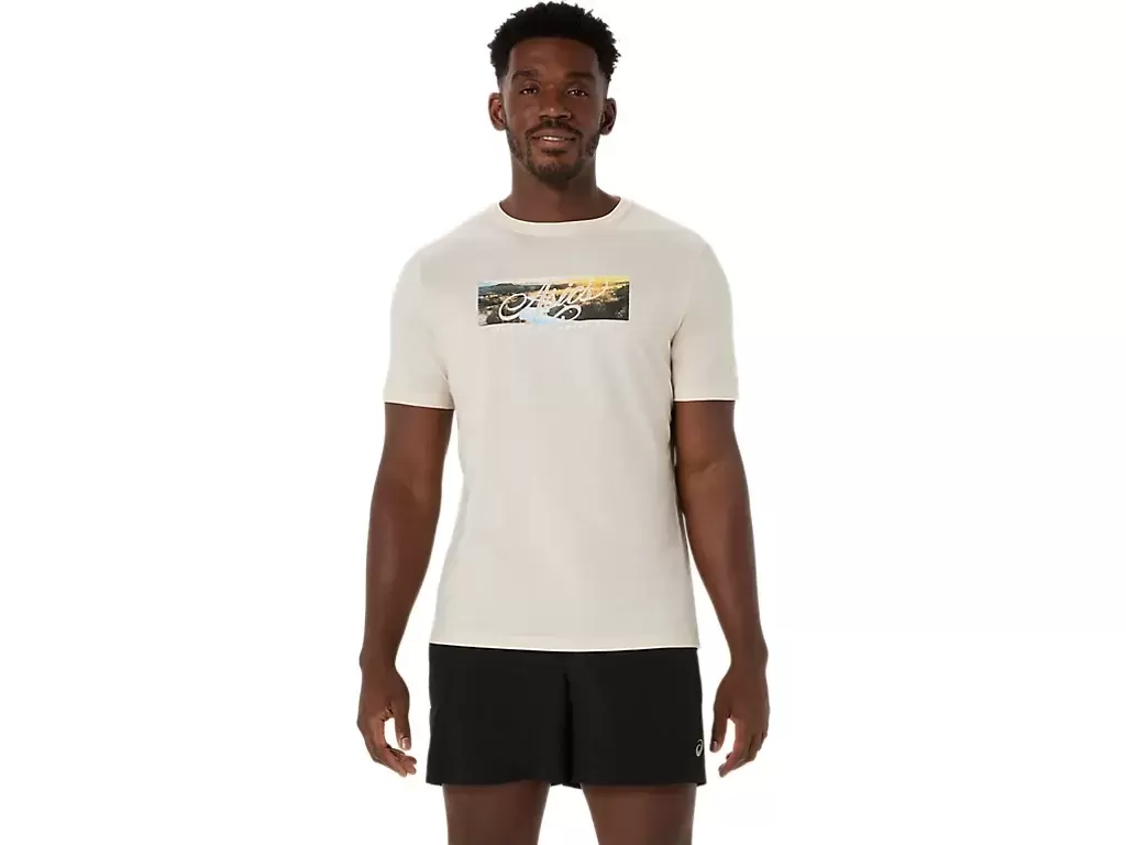 Esta cómoda camiseta de punto de manga corta se inspira en entornos naturales montañosos.