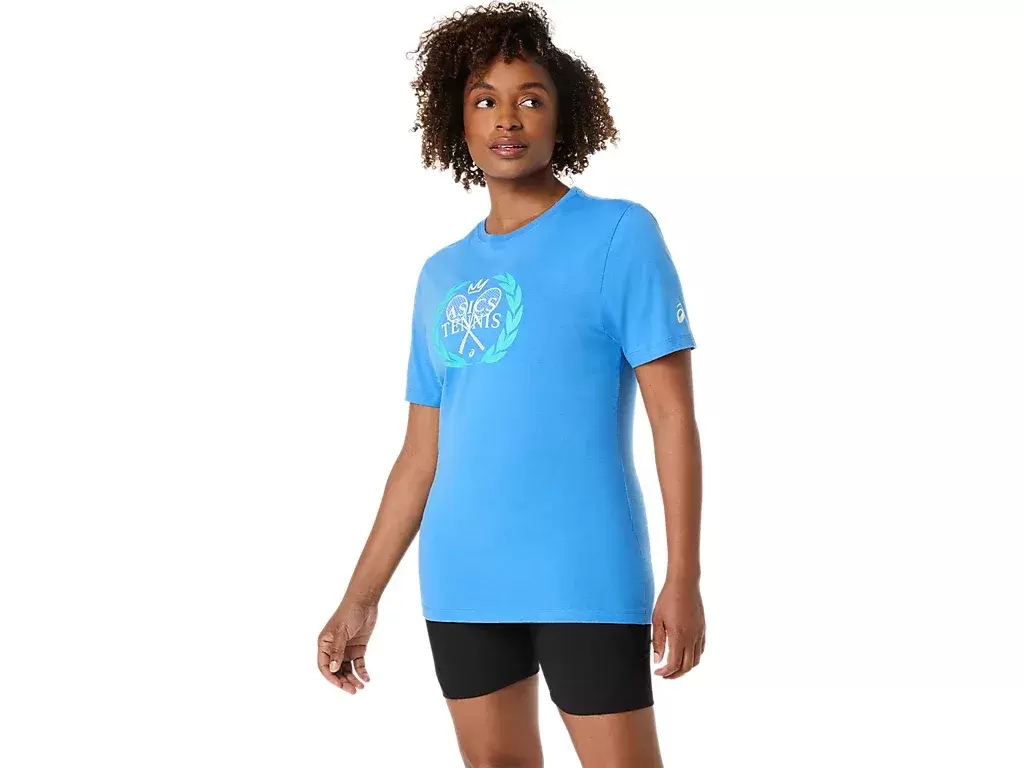 Esta cómoda camiseta de punto de manga corta está inspirada en motivos tradicionales del tenis. La parte delantera presenta un gráfico de una corona de laurel, combinado con un diseño de raquetas de tenis cruzadas y un emblema de corona encima.