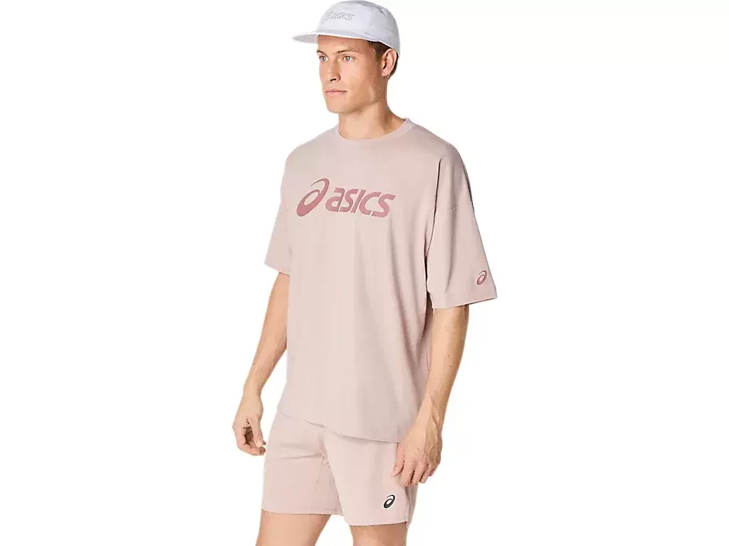 La camiseta también presenta un gráfico del logotipo y una silueta de corte relajado.