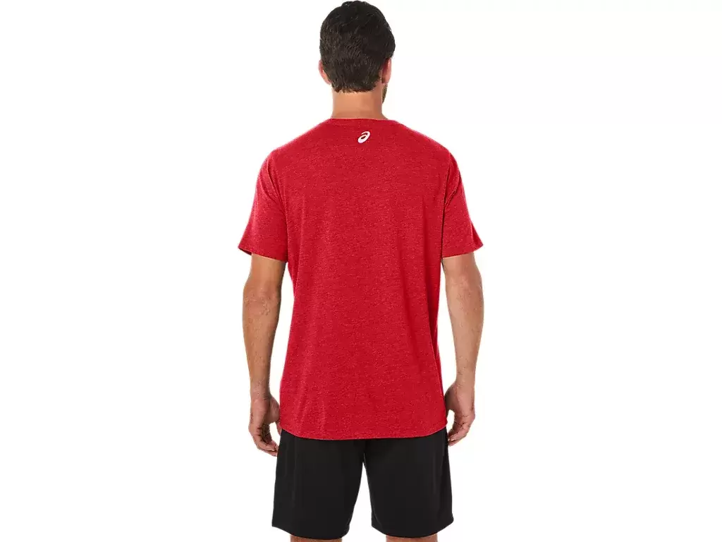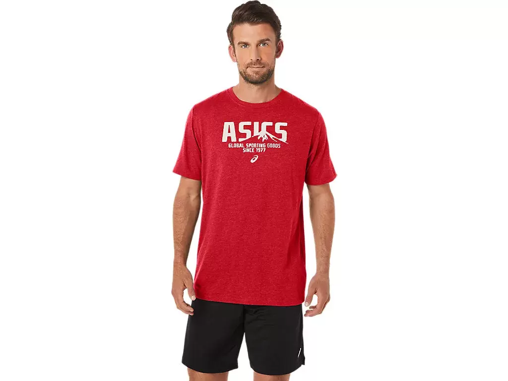 Confeccionada en tejido de punto, esta camiseta es práctica para una variedad de rutinas de entrenamiento. También incorpora el logotipo de ASICS en la parte delantera, así como el logotipo de una montaña integrado en el diseño.