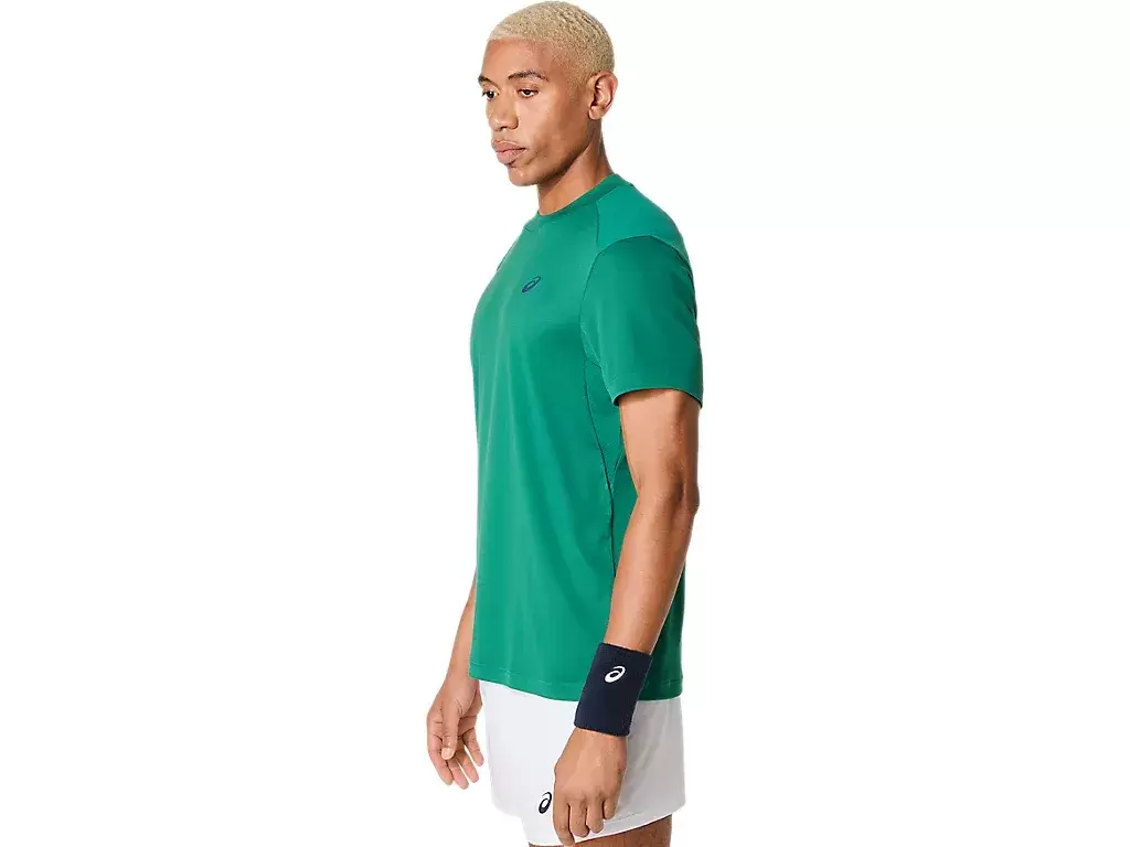 La camiseta de manga corta COURT presenta un diseño clásico, atemporal para una variedad de partidos y entrenamientos. Está diseñada con un material clásico de tenis y su tejido seco y suave controla la humedad para una prenda cómoda.