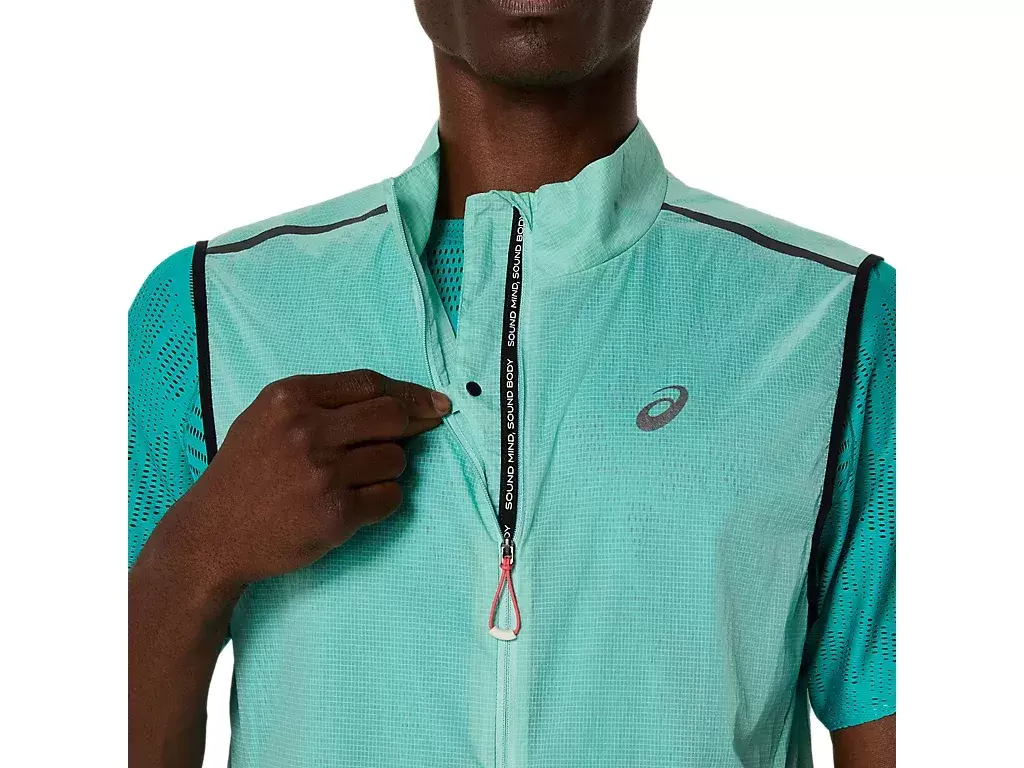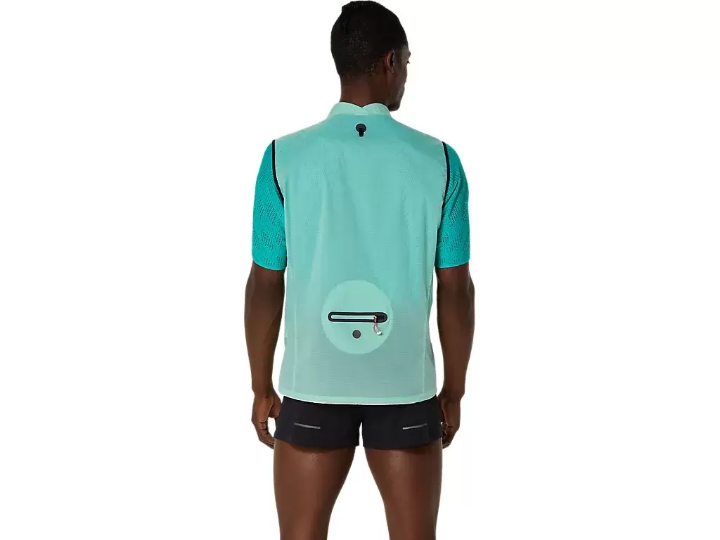 Creado para los días de running cuando no te fías del tiempo. El chaleco plegable ASICS® pinnacle METARUN® se puede quitar y guardar fácilmente en el bolsillo trasero durante la carrera. La tela ligera de primera calidad de esta prenda protege del frío y el viento.