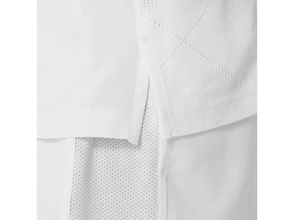 La ligera camiseta también cuenta con un panel de malla repelente al agua en la espalda y aberturas laterales en el dobladillo para ayudarte a mantenerte seco y cómodo.