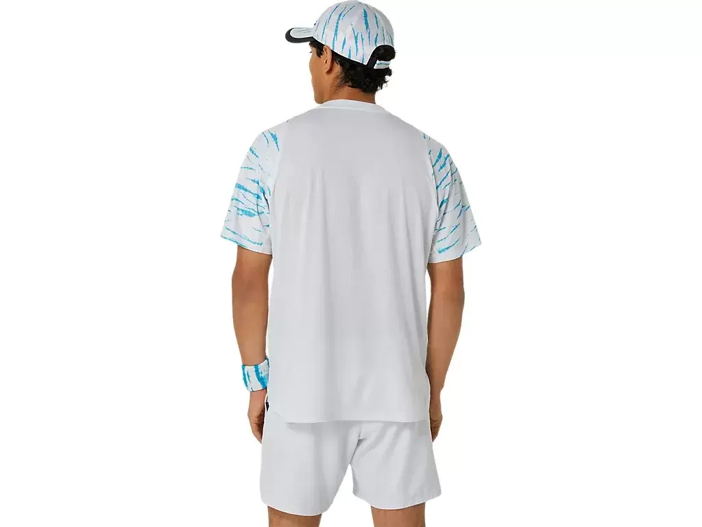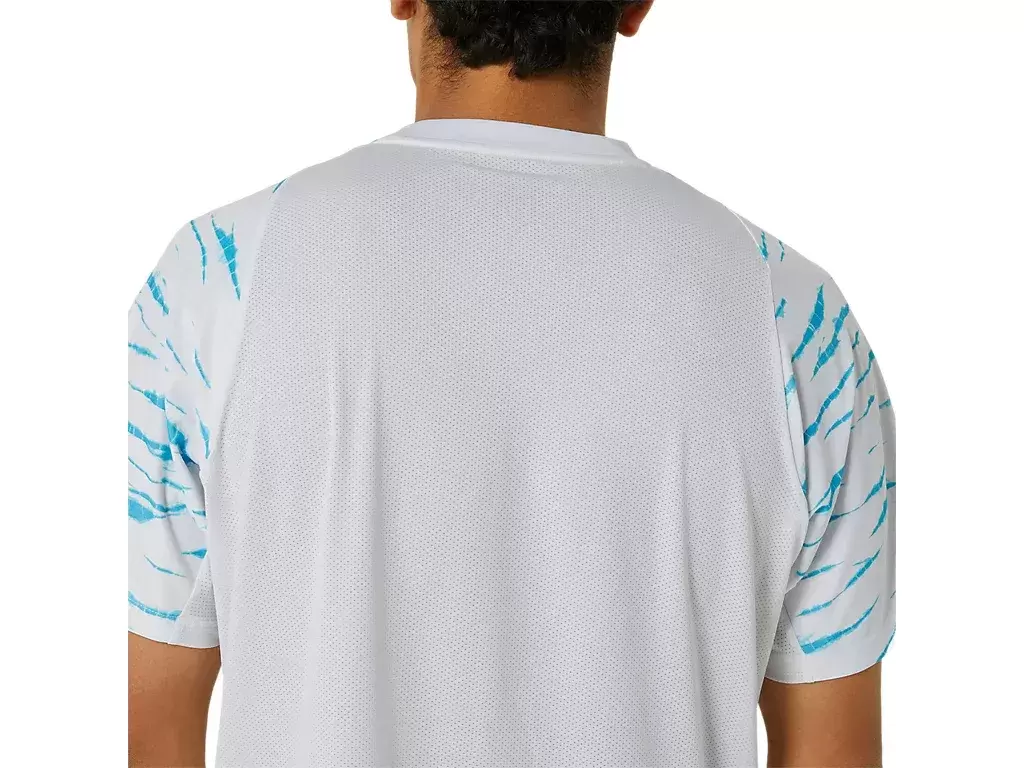 Además, esta camiseta presenta un estampado gráfico integral inspirado en el Shibori, la técnica tradicional de teñido japonés.
