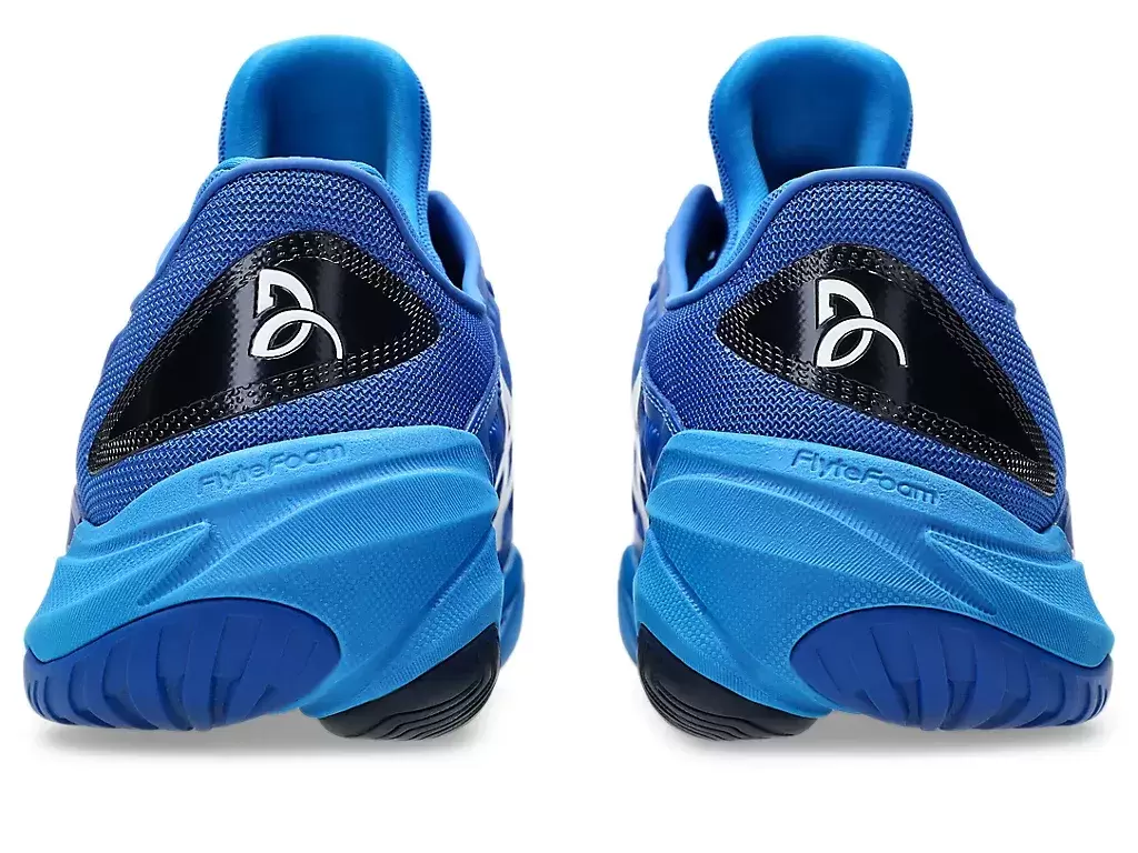 Novak tiene un golpe de paso cero. Esto significa que balancea la raqueta al aterrizar. Al aumentar el área de contacto de la suela, la zapatilla ayuda a crear un aterrizaje estable y puede reducir la carga sobre el cuerpo. Como resultado, puedes concentrar más energía en generar un swing potente.