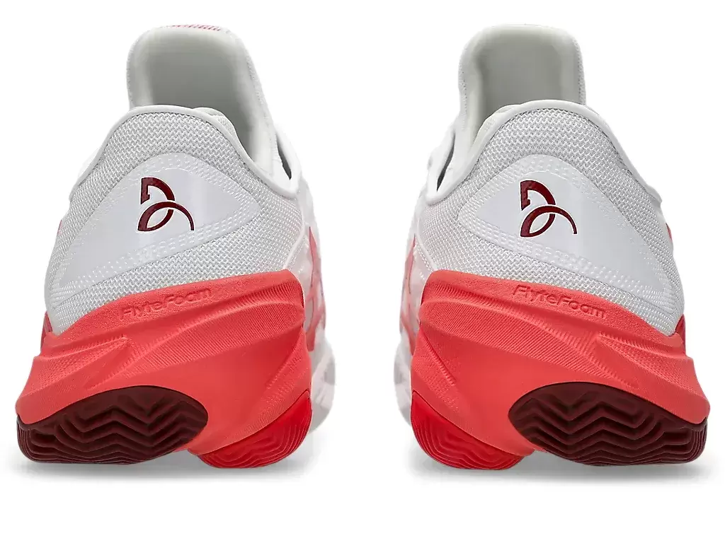 Novak tiene un golpe de paso cero. Esto significa que balancea la raqueta al aterrizar. Al aumentar el área de contacto de la suela, la zapatilla ayuda a crear un aterrizaje estable y puede reducir la carga sobre el cuerpo. Como resultado, puedes concentrar más energía en generar un swing potente.