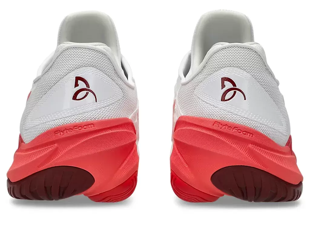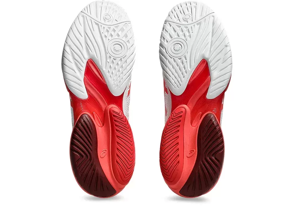 Novak tiene un golpe de paso cero. Esto significa que balancea la raqueta al aterrizar. Al aumentar el área de contacto de la suela, la zapatilla ayuda a crear un aterrizaje estable y puede reducir la carga sobre el cuerpo. Como resultado, puedes concentrar más energía en generar un swing potente.