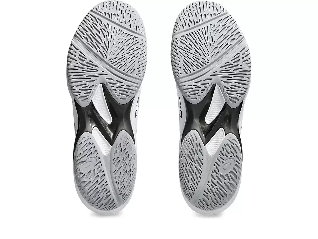 El diseño de la suela exterior de la zapatilla refleja el de la SOLUTION SPEED™ FF. Su diseño de trazos verticales mejora la tracción en la cancha.