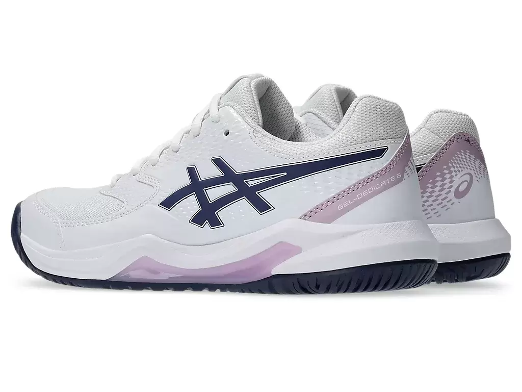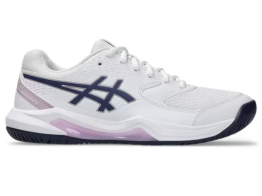 La zapatilla de tenis GEL-DEDICATE® 8 (Ancha) ofrece buena estabilidad y una sensación de flexibilidad para mantener la concentración durante el partido.