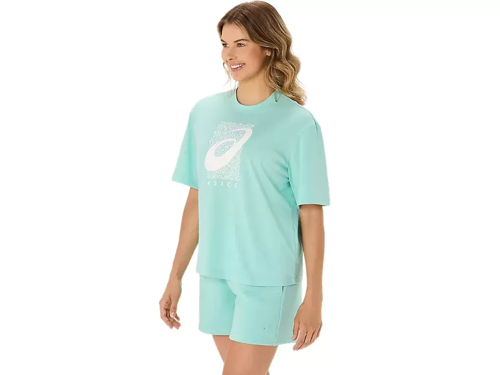 La parte superior también se complementa con un gráfico ASICS® Spiral de temporada, un largo corto, un diseño de ajuste relajado y aberturas laterales para facilitar el movimiento.