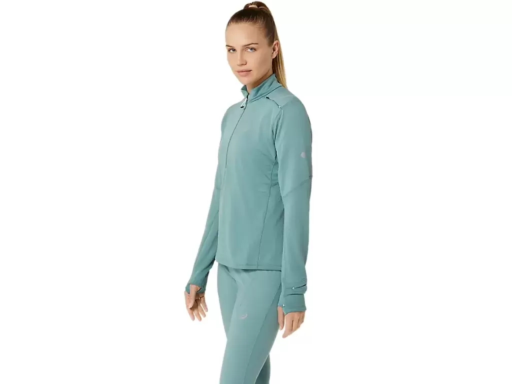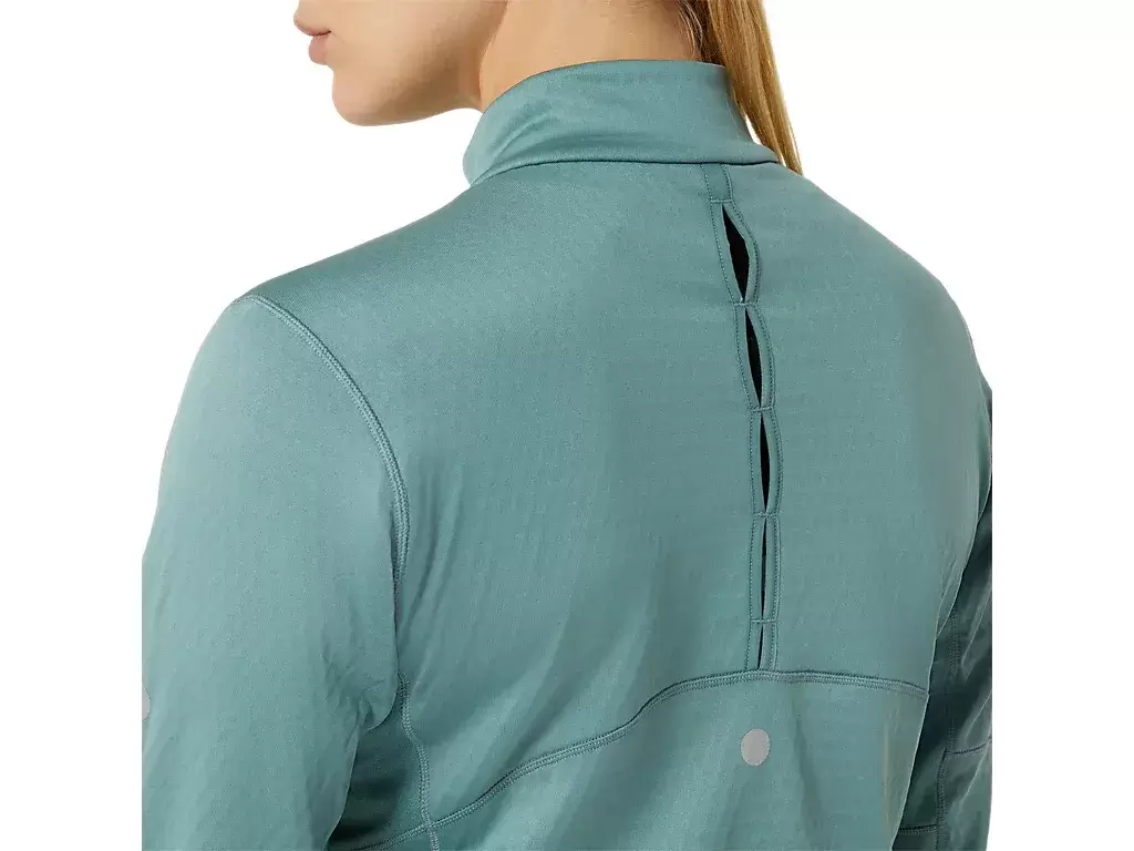 Esta prenda está diseñada con tejido de punto cepillado para ayudarte a mantenerte cómodo en diferentes temperaturas. Las funciones favoritas incluyen las ranuras de ventilación tipo cerradura en la espalda para un mayor flujo de aire y una ventana de reloj inteligente que te permite consultar tus datos sin interrumpir tu ritmo de carrera.