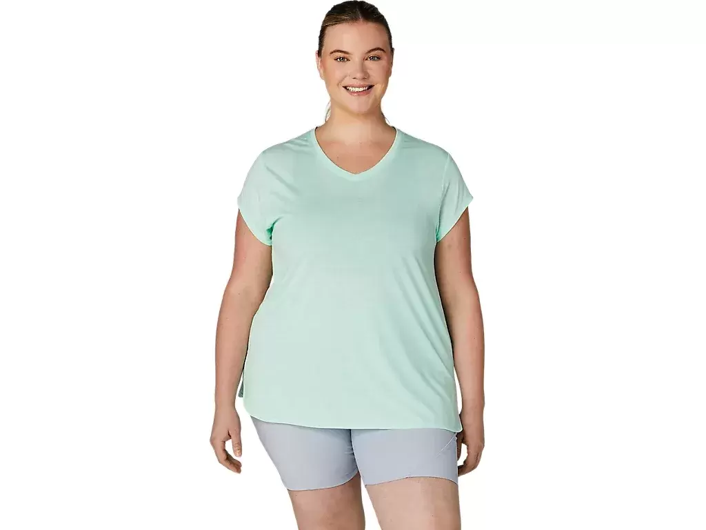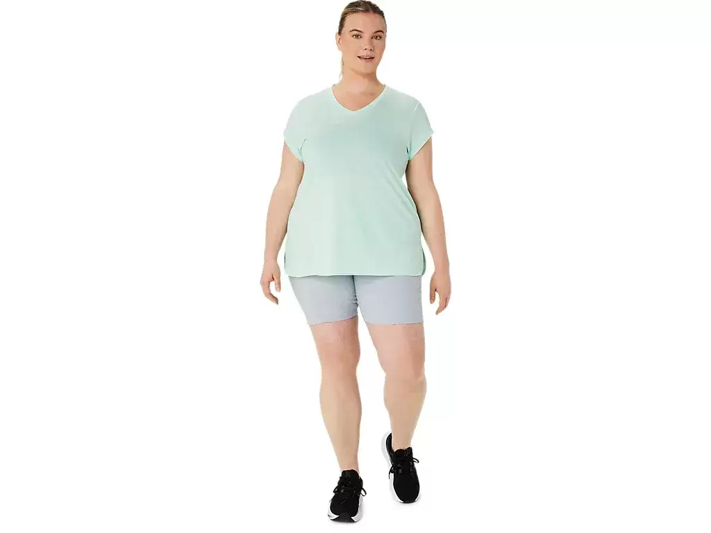 Esta camiseta de manga corta con cuello en V está diseñada para brindar una sensación elegante en contacto con la piel. Presenta un cómodo tejido de punto con costuras laterales delanteras para mayor libertad de movimiento.