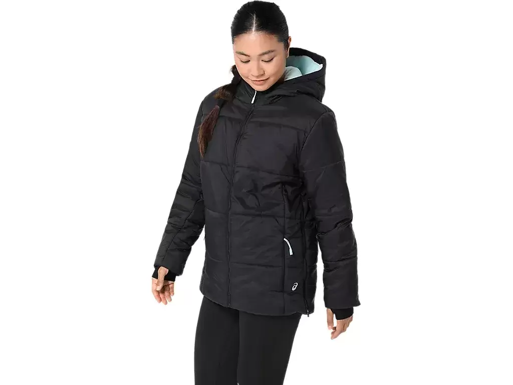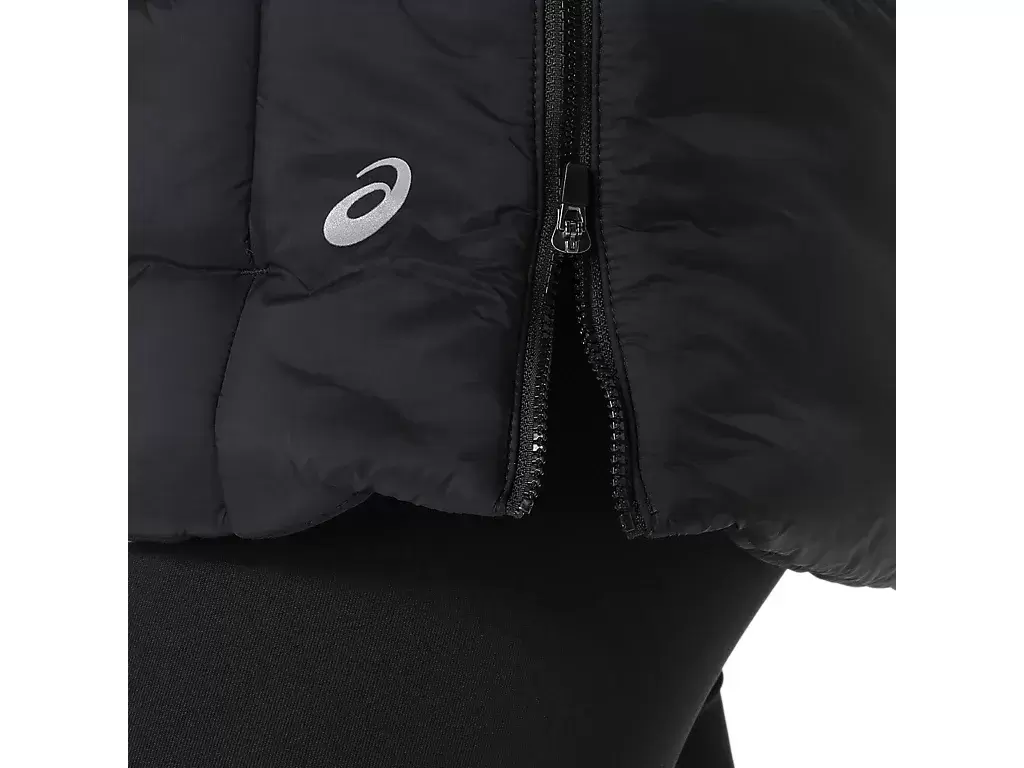 Logotipo reflectante de ASICS en el hombro izquierdo del usuario