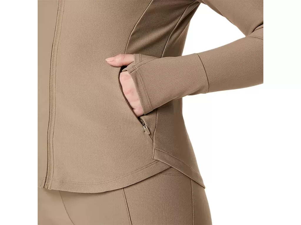 Nuestra CHAQUETA DE ACANALADO PARA MUJER es extra cómoda y muy versátil. Ya sea que vayas o vuelvas de tu entrenamiento favorito, esta chaqueta te ayudará a mantenerte cómoda y lucir estupenda. La tela es muy ligera y elástica, adaptándose a tus movimientos. También cuenta con bolsillos laterales con cremallera para guardar cosas cómodamente.