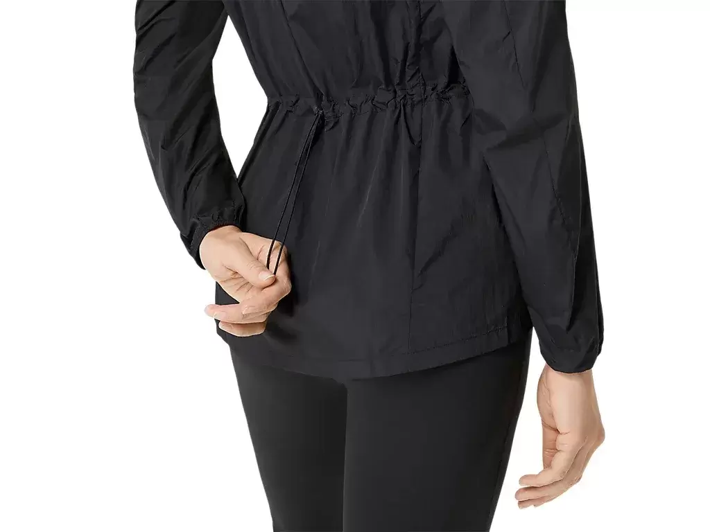 También cuenta con un cordón de ajuste en el dobladillo de la capucha que ayuda a mantenerla en su lugar cuando estás en movimiento.