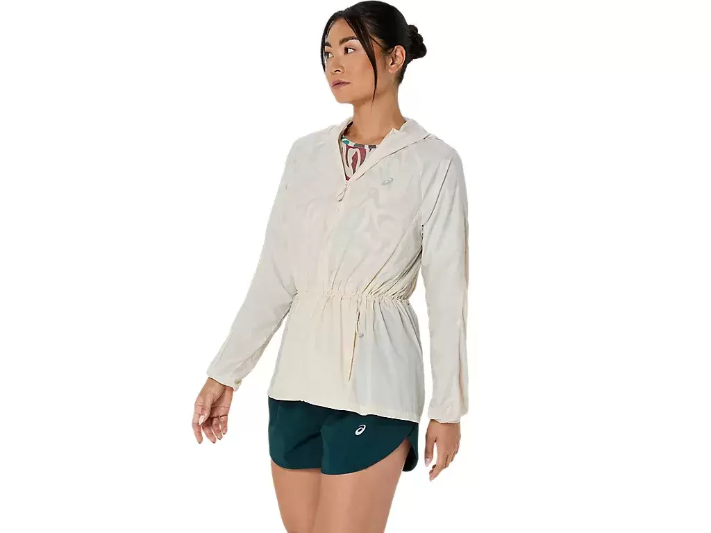 También cuenta con un cordón de ajuste en el dobladillo de la capucha que ayuda a mantenerla en su lugar cuando estás en movimiento.