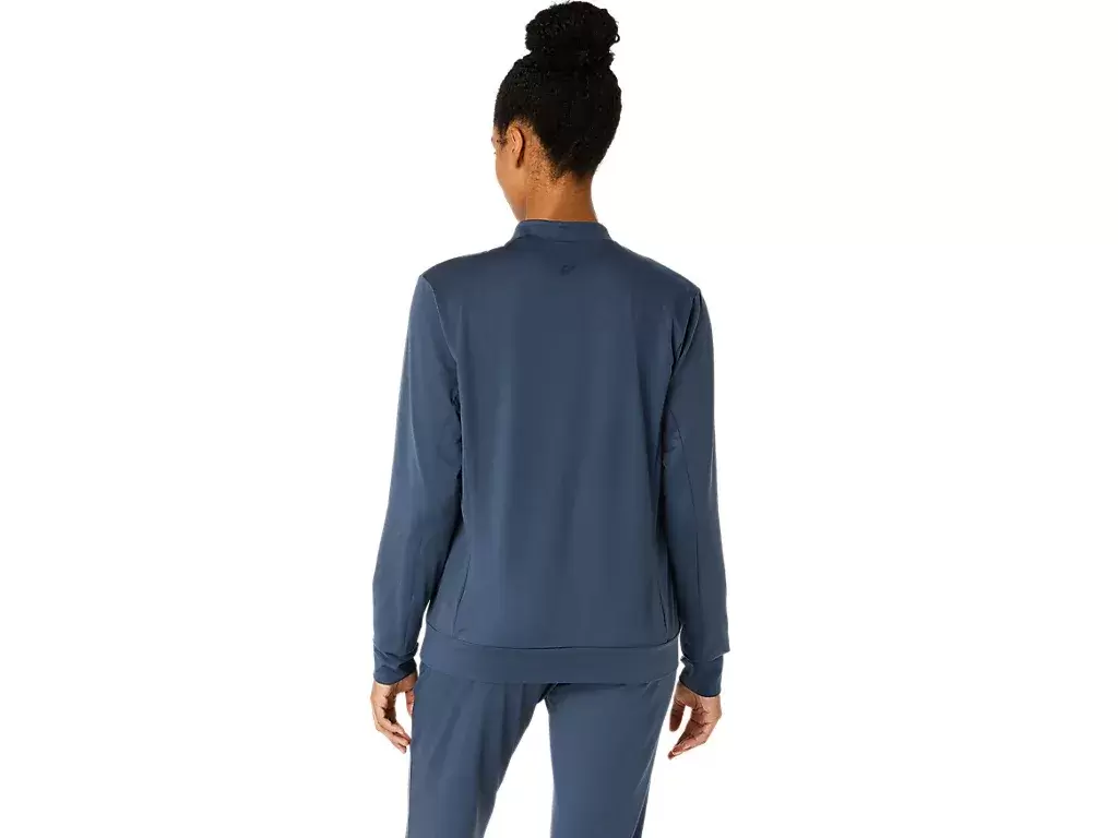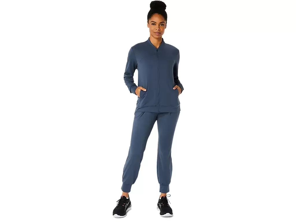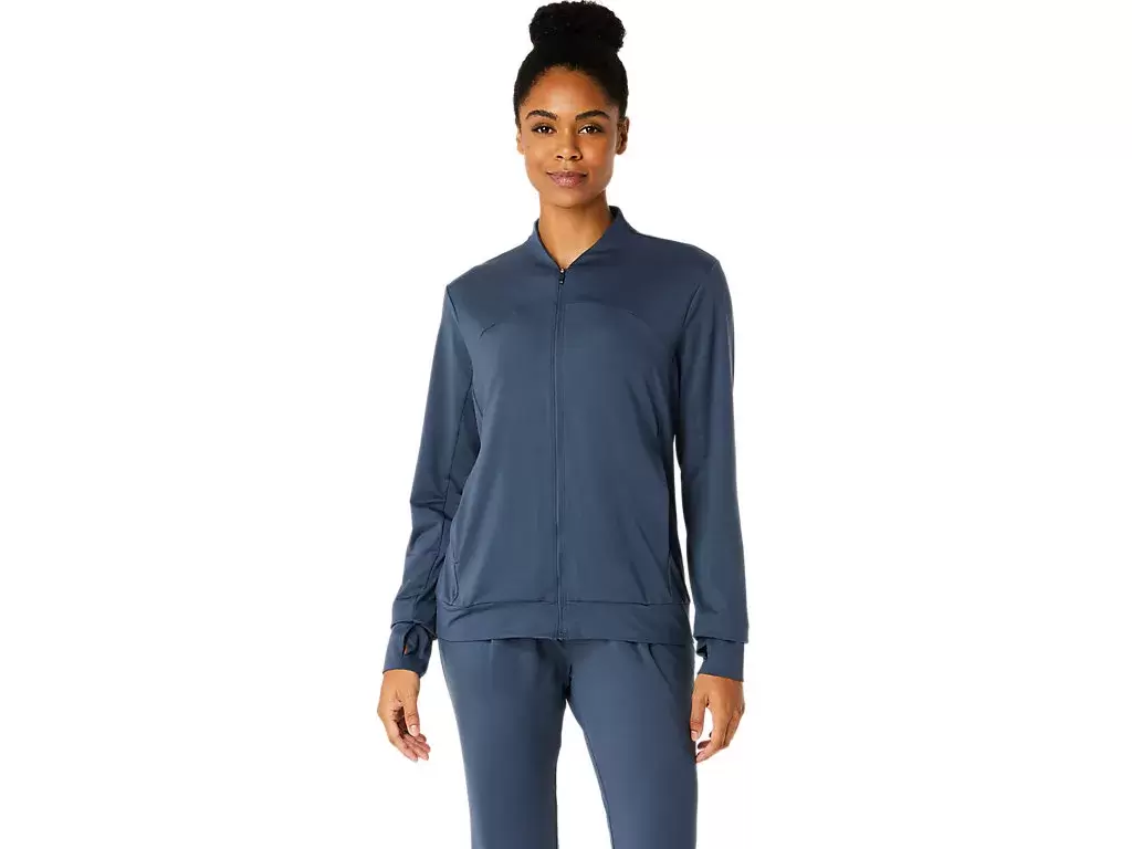Esta chaqueta presenta un tejido de punto suave y elástico que es cómodo para diversas actividades.