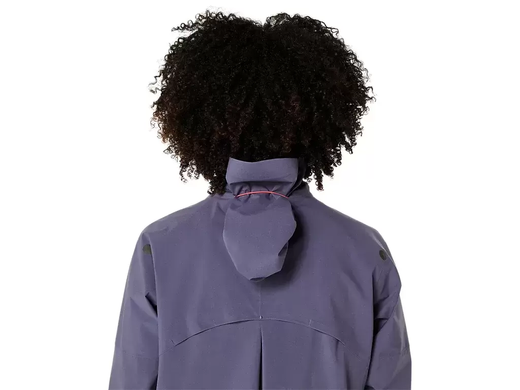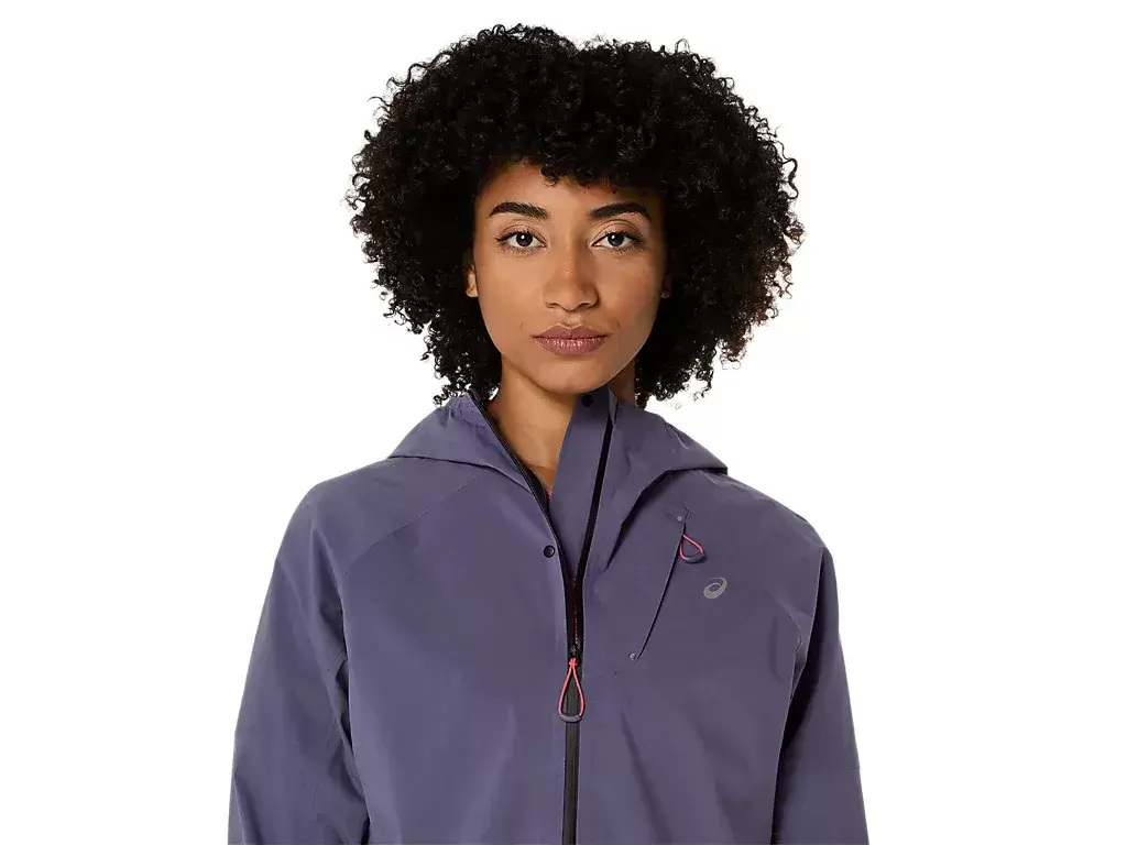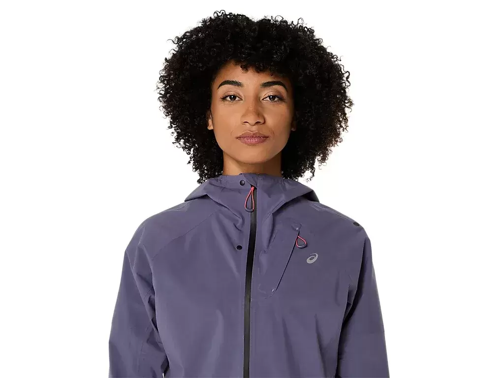 La chaqueta METARUN® WATERPROOF es una de las más avanzadas de la colección de running de ASICS®. Es práctica para correr bajo la lluvia y se puede quitar y guardar fácilmente en el bolsillo del pecho durante la carrera.