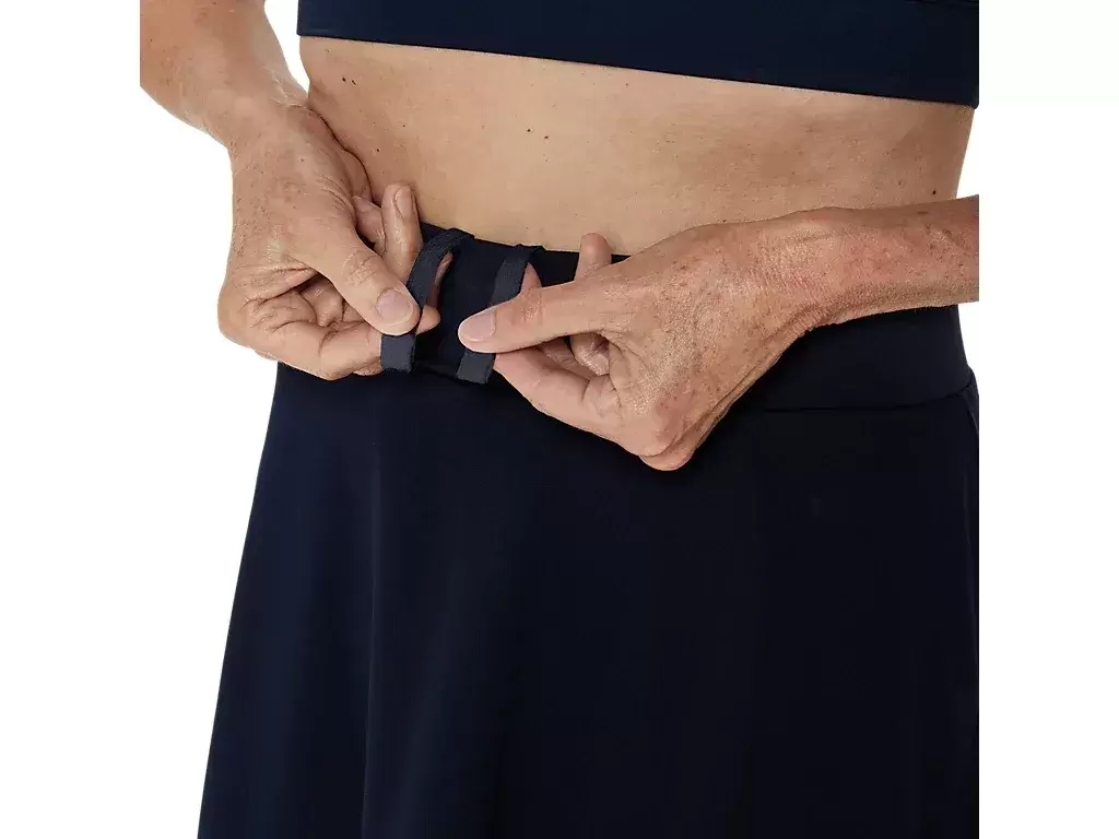 La falda pantalón también incluye un cordón en la cintura que facilita el ajuste, mientras que sus aberturas laterales permiten libertad de movimiento.