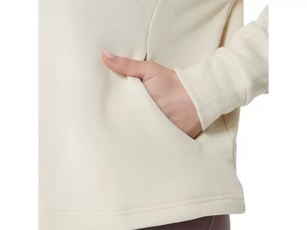 Presenta una silueta relajada, un diseño corto para un look elegante y un bolsillo tipo canguro en la parte delantera. También incluye un cordón elástico en el cuello para un ajuste ajustable que te mantiene abrigado.