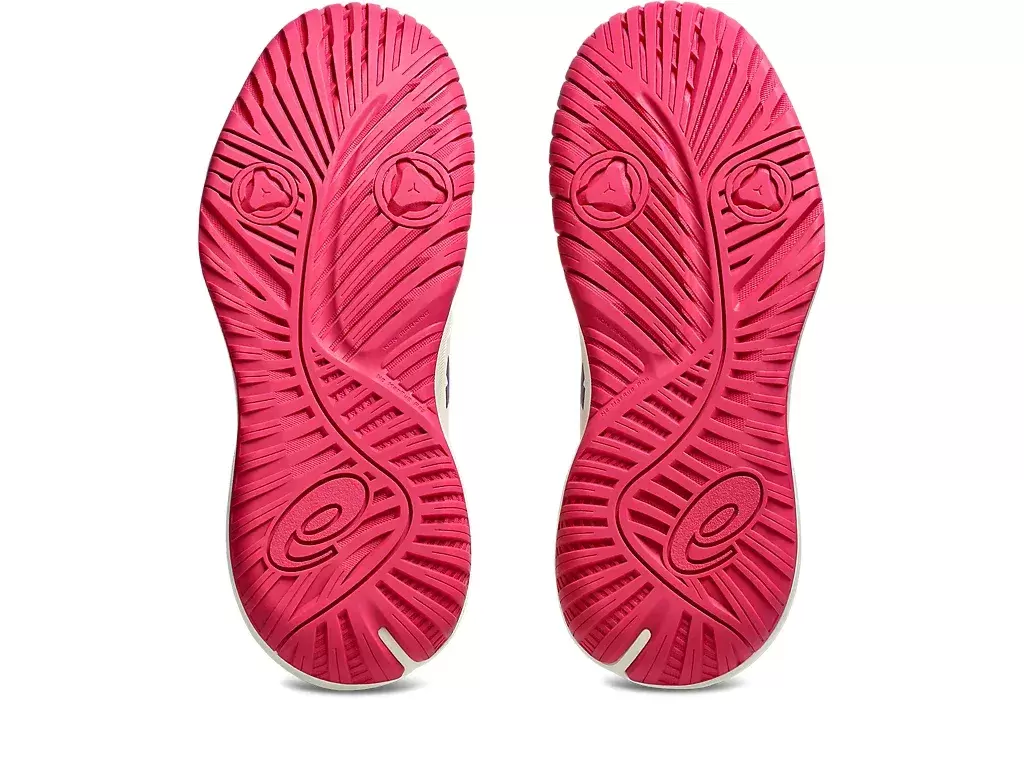 La goma de alta resistencia a la abrasión de ASICS, ubicada en la zona del talón, es aproximadamente tres veces más duradera que la suela estándar. Cauchos.