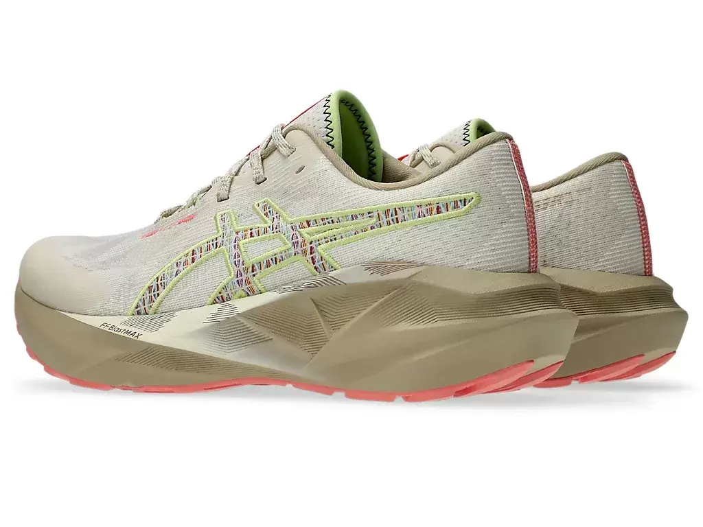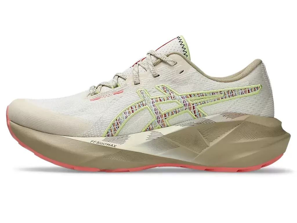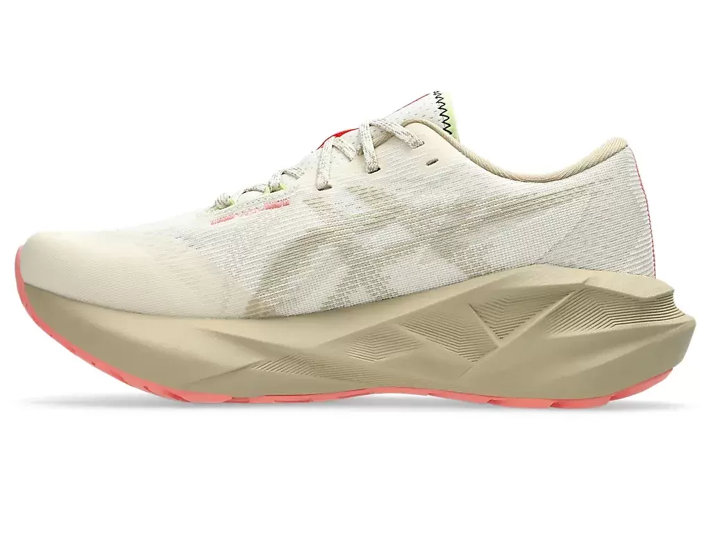 La geometría de la entresuela y la suela de la zapatilla de running NOVABLAST® 5 NATURE BATHING™ TR proporciona una pisada dinámica. Su combinación de colores se inspira en elementos del paisaje costero tropical, como olas, madera flotante, rocas y conchas marinas.
