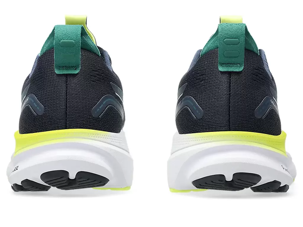La goma de alta resistencia a la abrasión de ASICS ubicada en el área del talón es aproximadamente tres veces más duradera que la suela estándar. Gomas.